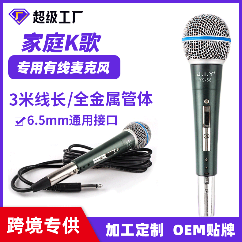 JIY厂家有线麦克风 家用K歌舞台电脑录音动圈式金属58有线话筒