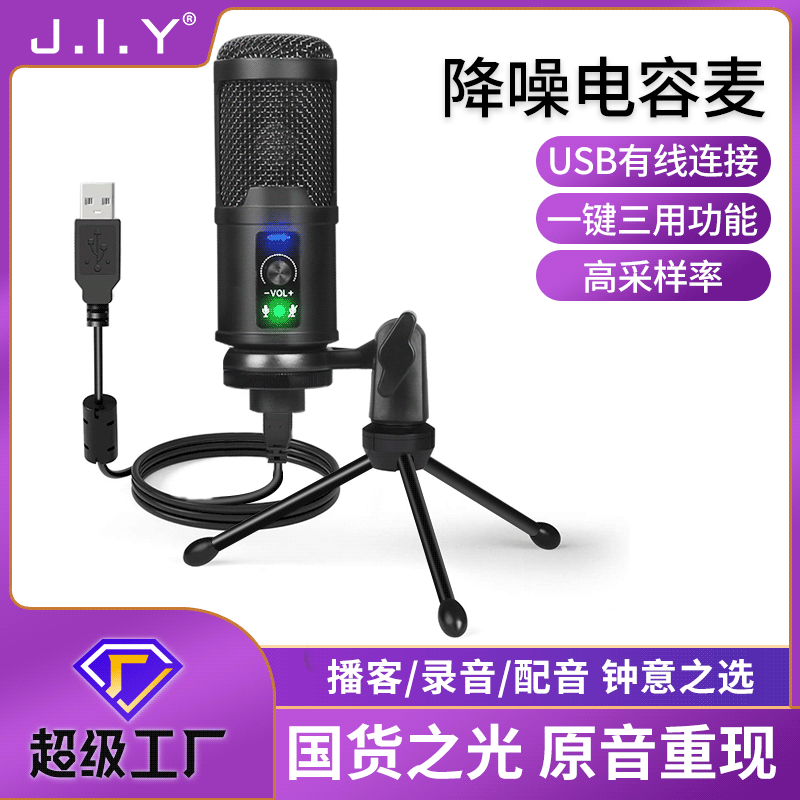 JIY电脑USB电容麦克风 主播K歌录音降噪话筒直播设备套装加工定制