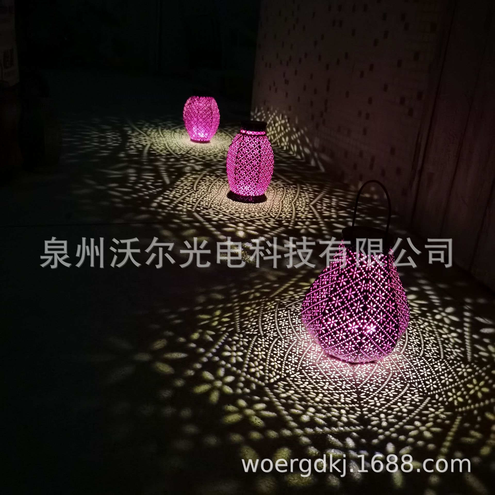 热销亚马逊跨境太阳能户外庭院装饰灯景观灯 镂空灯笼 草坪投影灯