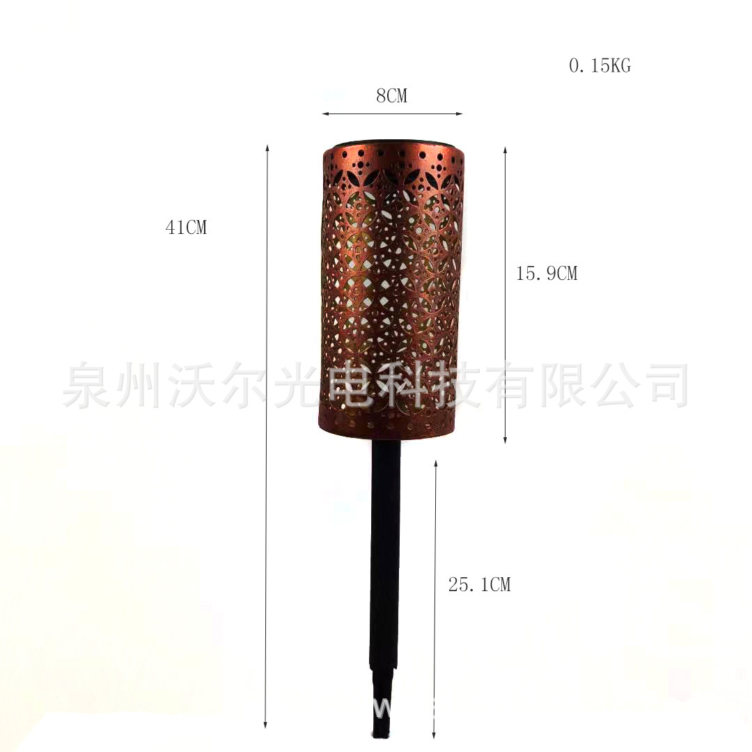 热销LED花园铁艺防水太阳能灯 圆柱形镂空复古地插路灯草坪灯2PCS