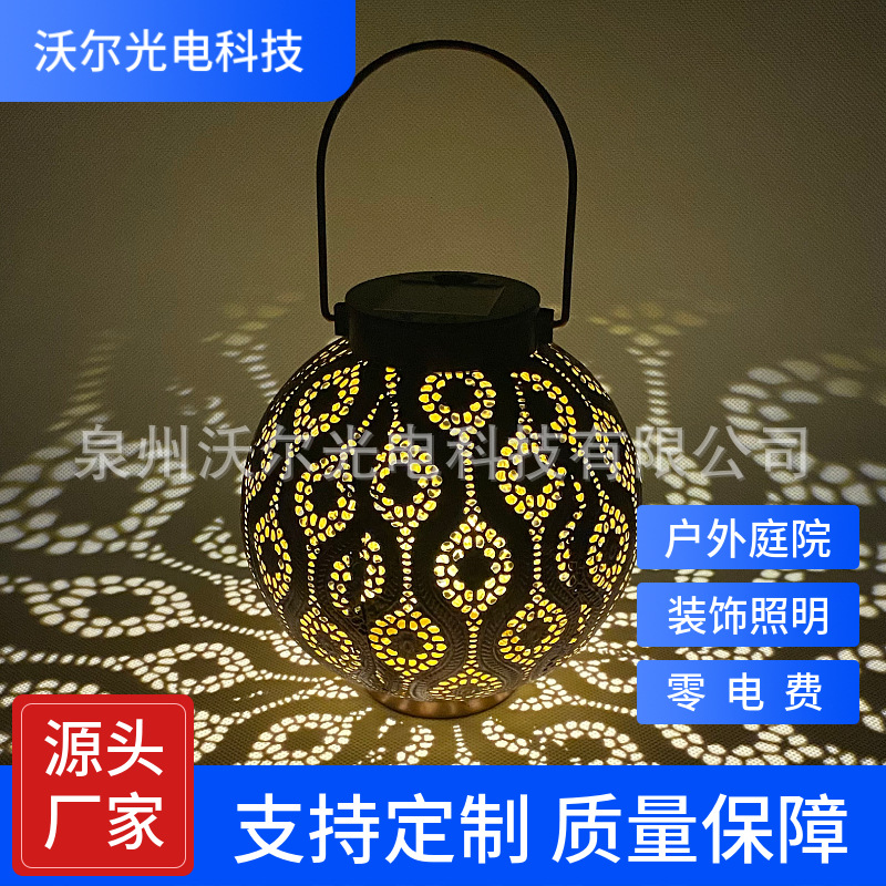 推荐亚马逊跨境热销 LED镂空太阳能灯笼 防水IP65 花园庭院装饰灯