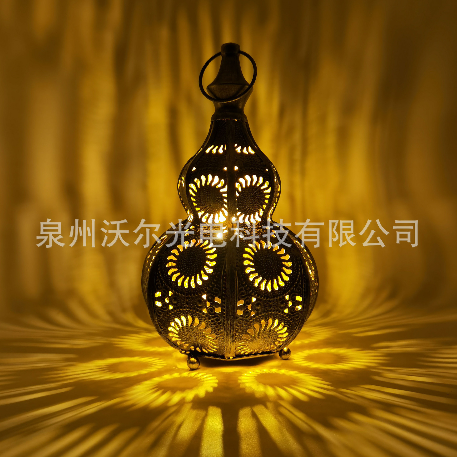亚马逊LED 户外庭院装饰灯六角摩洛哥花纹镂空 复古 铁艺投影灯