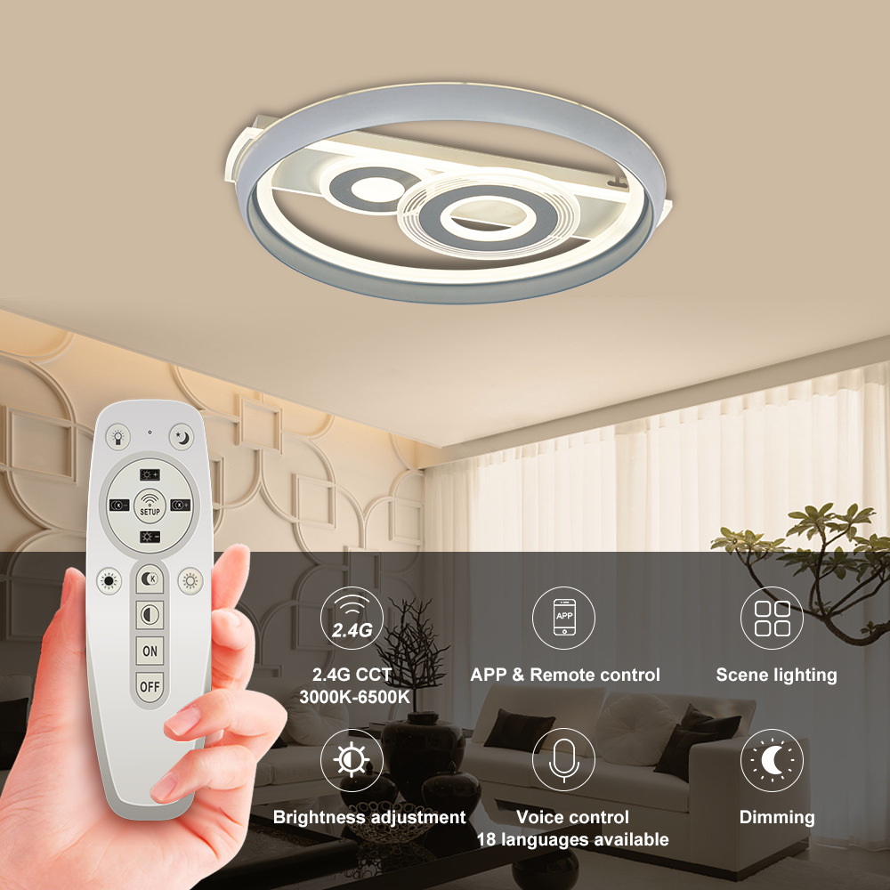 新款现代简约圆形LED吸顶灯72W亚克力智能2.4G遥控卧室灯客厅灯