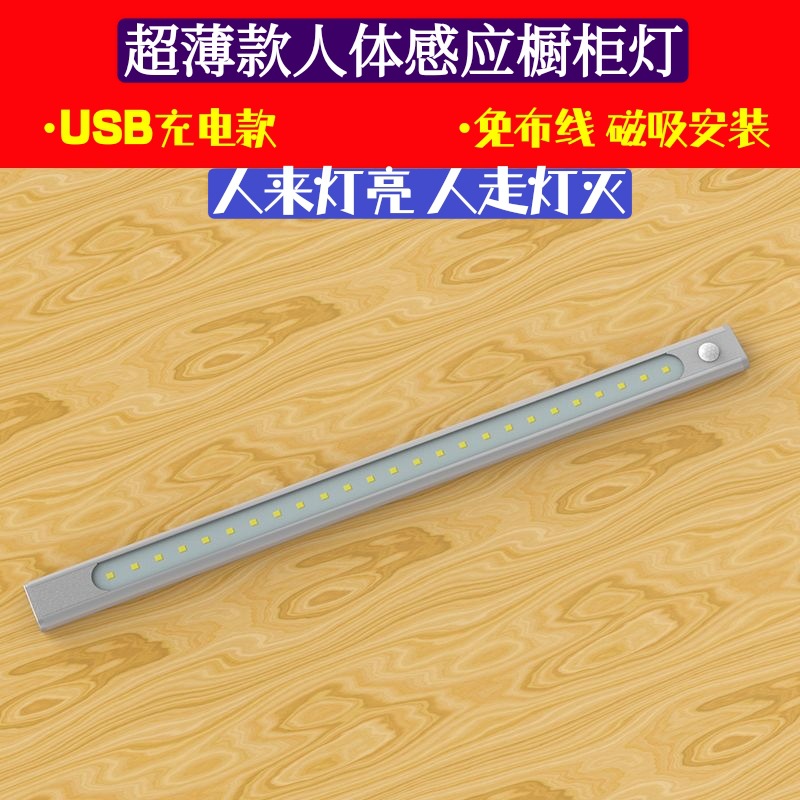 智能人体感应灯薄款led长条充电橱柜灯床头智能灯 无线感应衣柜灯