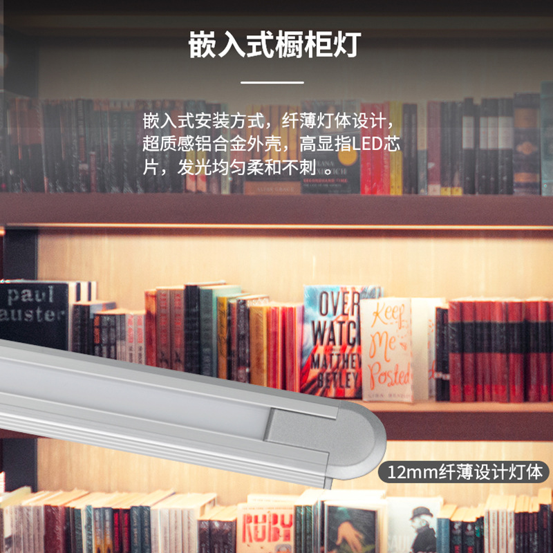 嵌入式灯条橱柜灯超薄衣柜灯条12V低压LED硬灯条暗装展柜书柜灯条