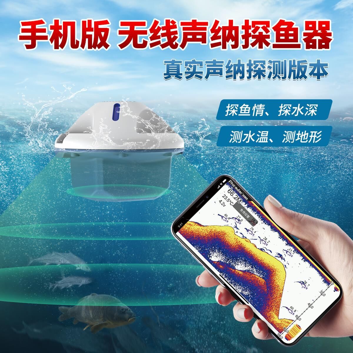 厂家直销无线声呐探鱼器智能手机蓝牙连接高清可视彩屏钓鱼找鱼器