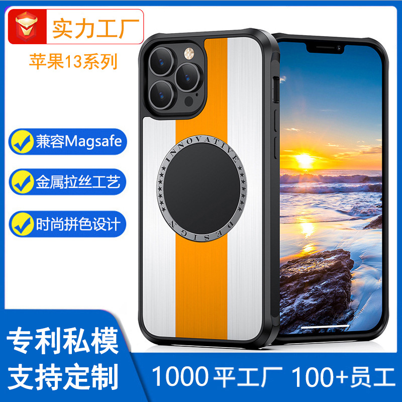 适用iPhone13手机壳苹果13手机壳金属磁吸拉丝防摔保护套13ProMax