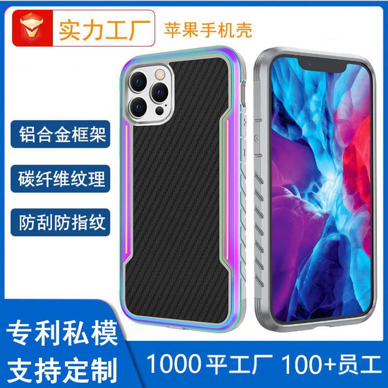 定制iphone12碳纤维纹手机壳苹果13promax商务金属防摔保护套适用