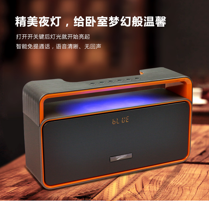 MUSKY DY37插卡低音炮蓝牙音箱床头小夜灯音箱时钟闹钟蓝牙音箱
