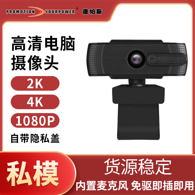 电脑摄像头2K免驱网络直播摄像头视频会议usb高清摄像头跨境批发
