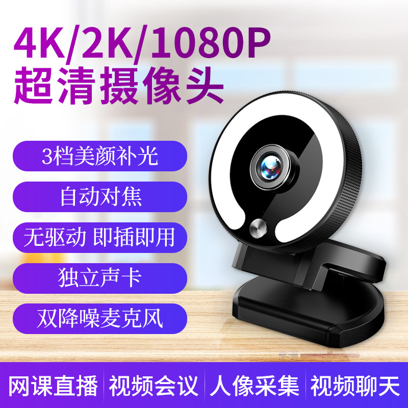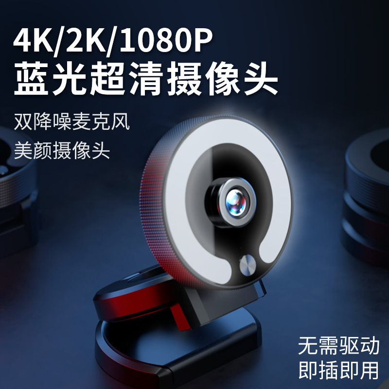 网络摄像头台式USB外置美颜补光直播2K/4K高清电脑会议摄像头跨境