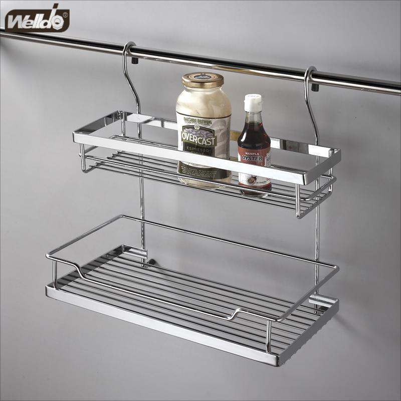 Welldo/纬东 厂家直销 双层香料架 橱房壁免打孔双层香料架
