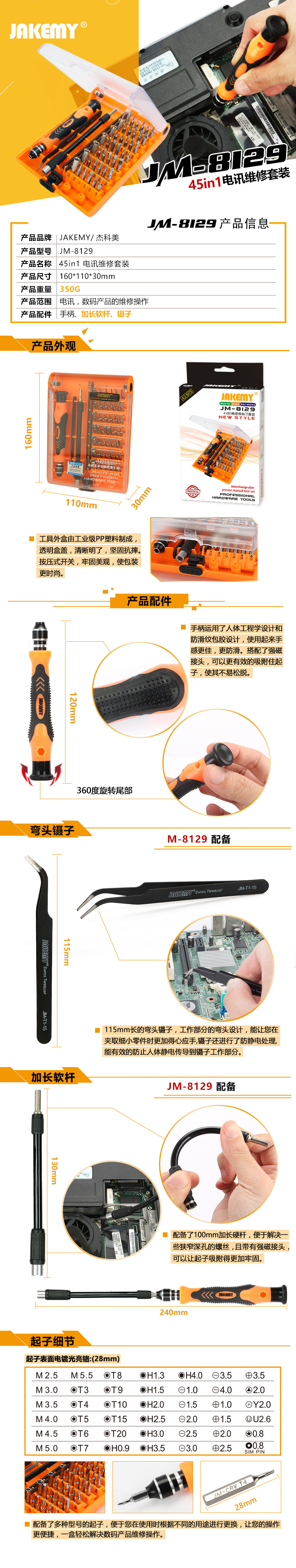45件螺丝批组合套装 家用电讯手机工具电子电器维修螺丝刀JM-8129