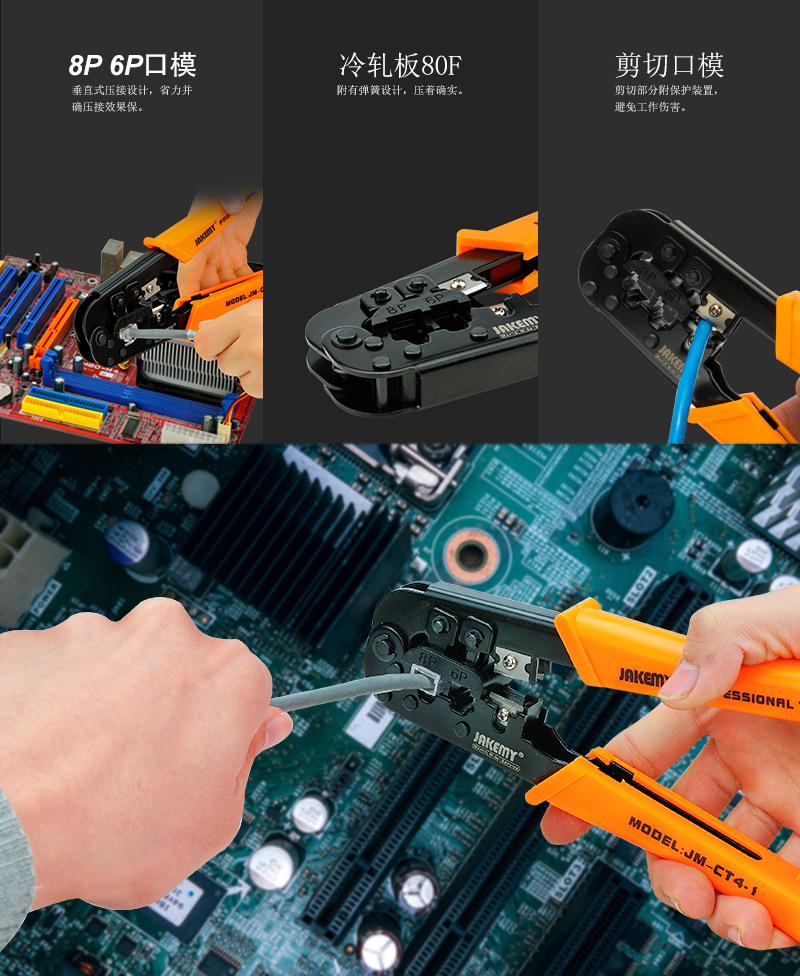 现货供应 EZ通孔高碳钢三用网线钳 网线绝缘压接钳网络端子压线钳