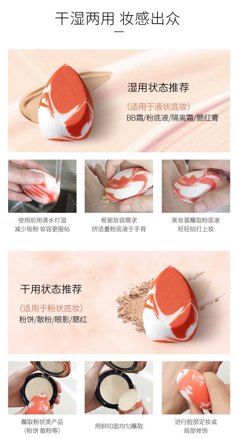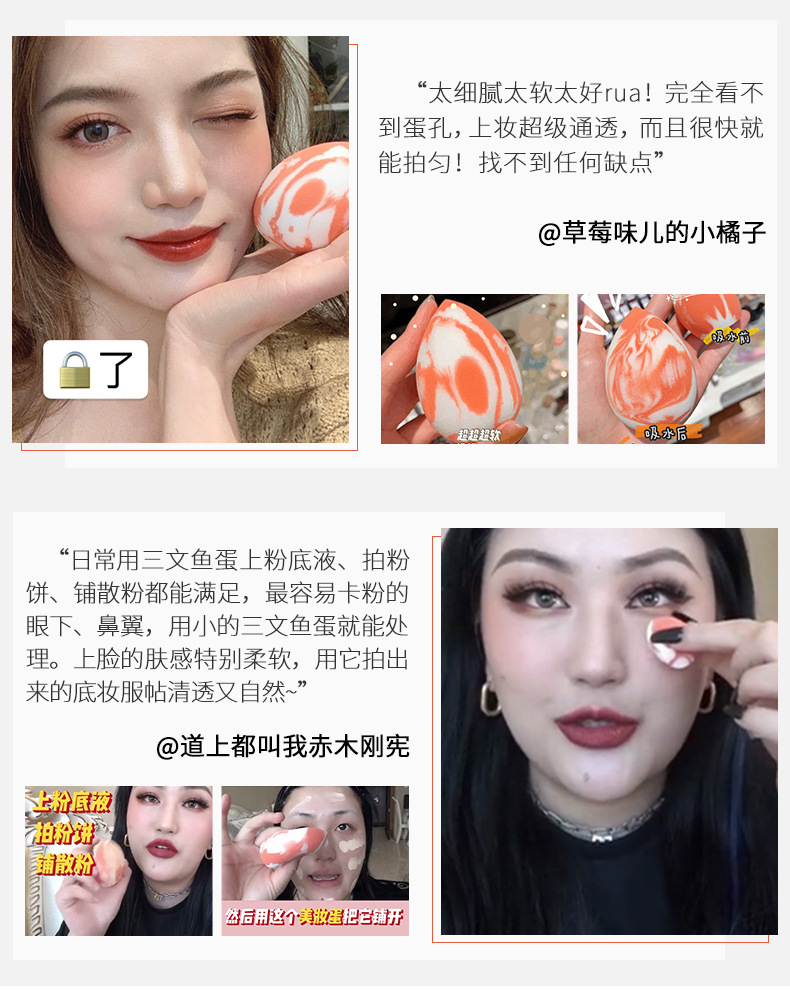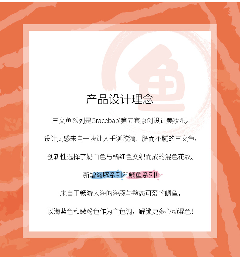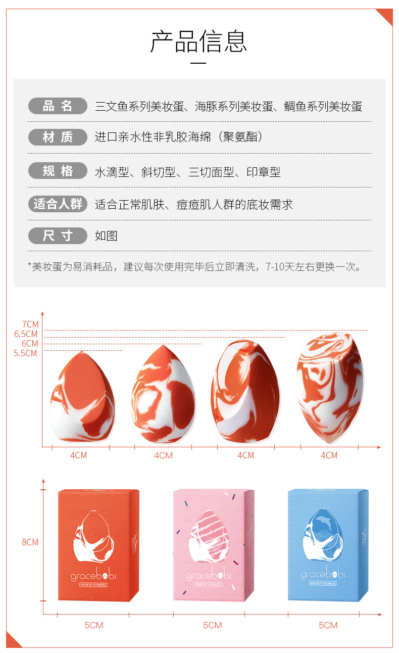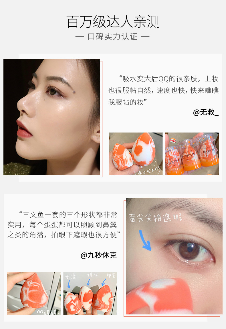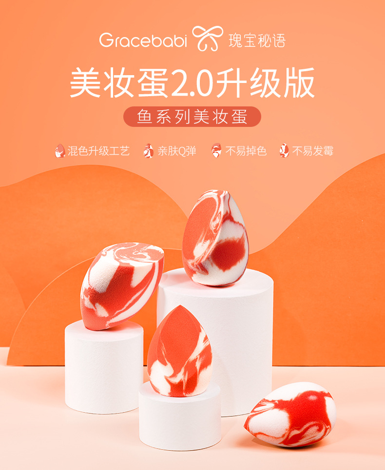 Gracebabi/瑰宝秘语三文鱼美妆蛋不吃粉化妆蛋干湿两用粉扑海绵蛋