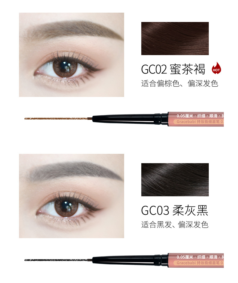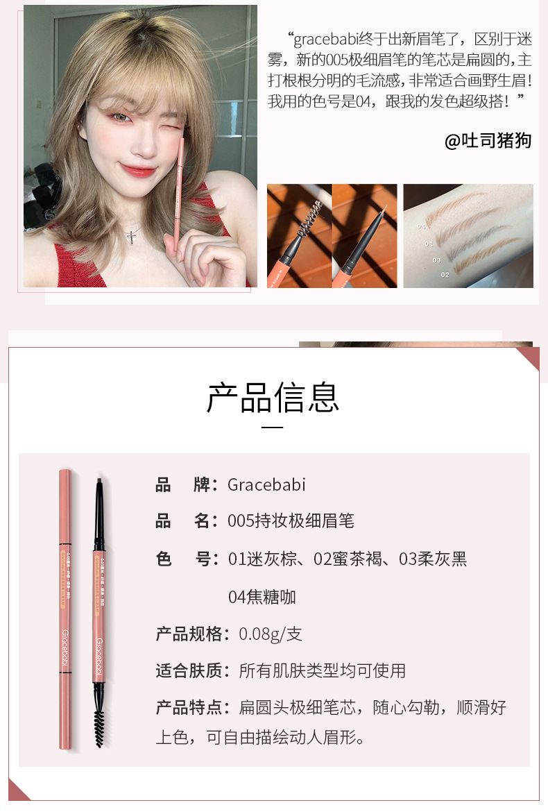 Gracebabi/瑰宝秘语005极细眉笔持久防水防汗不脱色初学新手代发