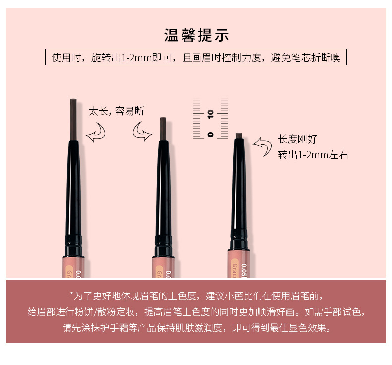 Gracebabi/瑰宝秘语005极细眉笔持久不脱色防水防汗初学者超细头