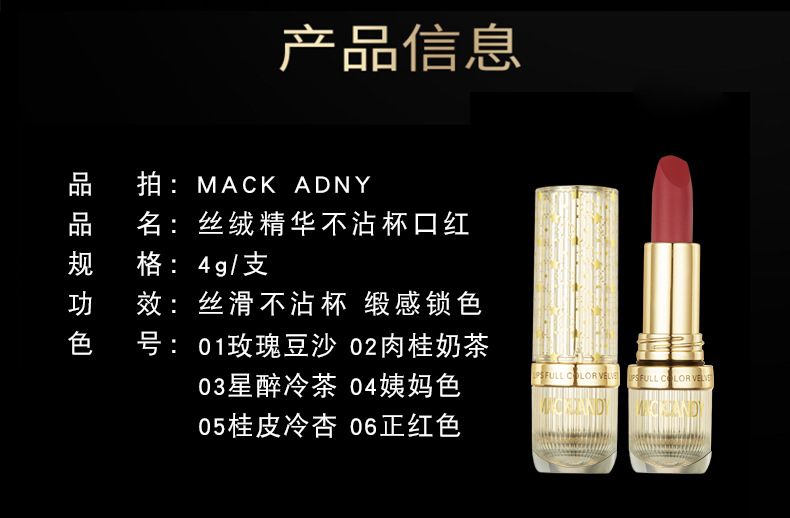 玛可安迪丝绒精华不沾杯口红抖音快手一件代发