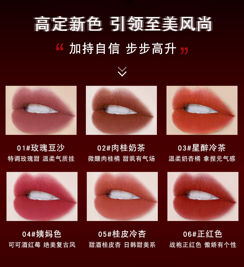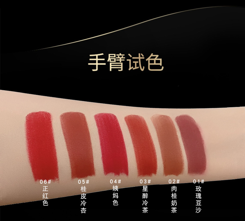 01玫瑰豆沙,02肉桂奶茶,星醉冷茶,04姨妈红,05桂皮冷杏,06正红色