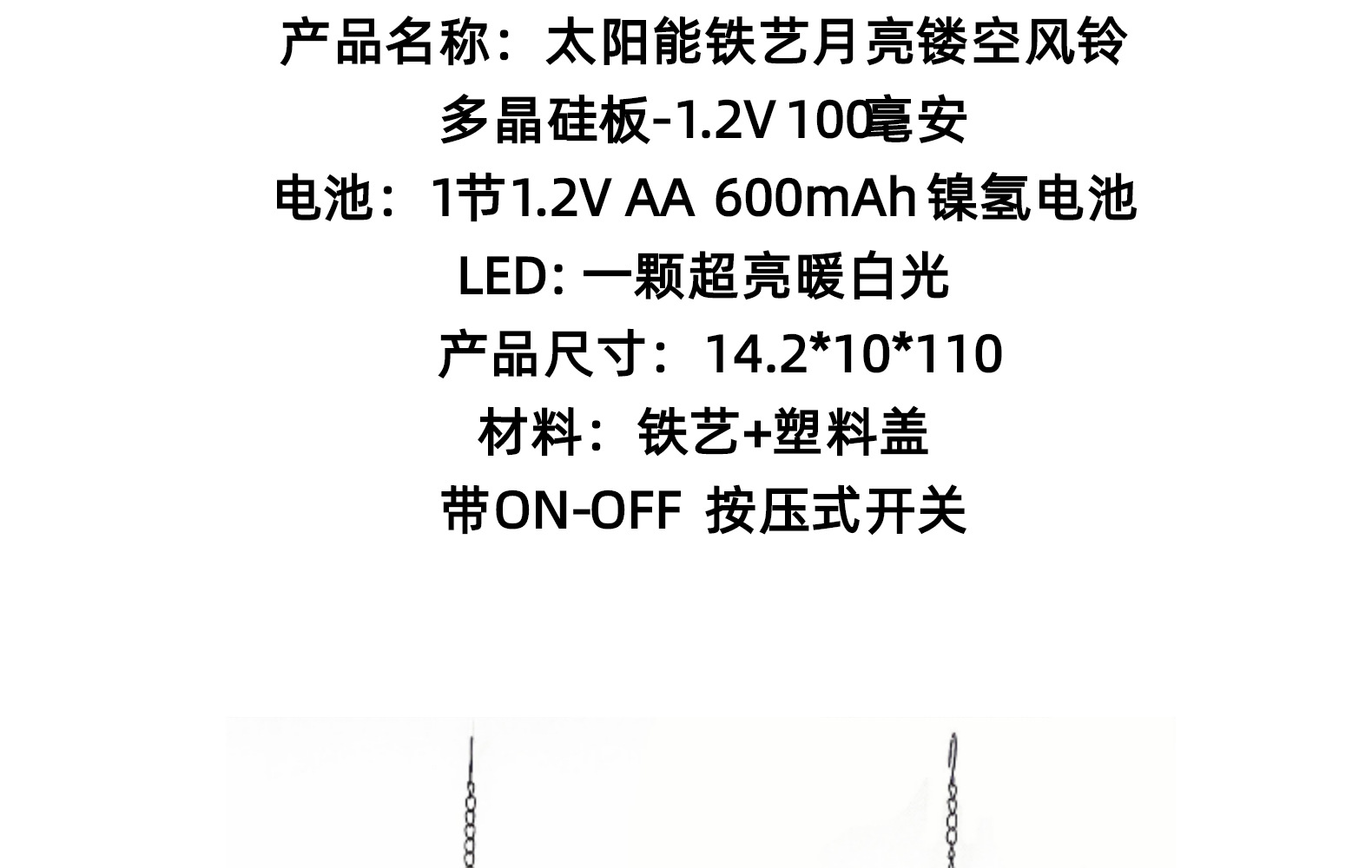 热销 LED铁艺太阳能月亮风铃灯 户外园林 景观装饰灯草坪灯挂树灯