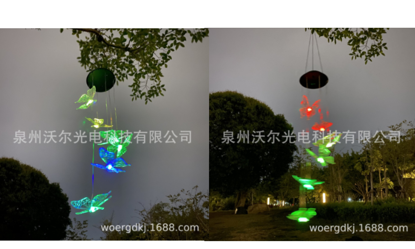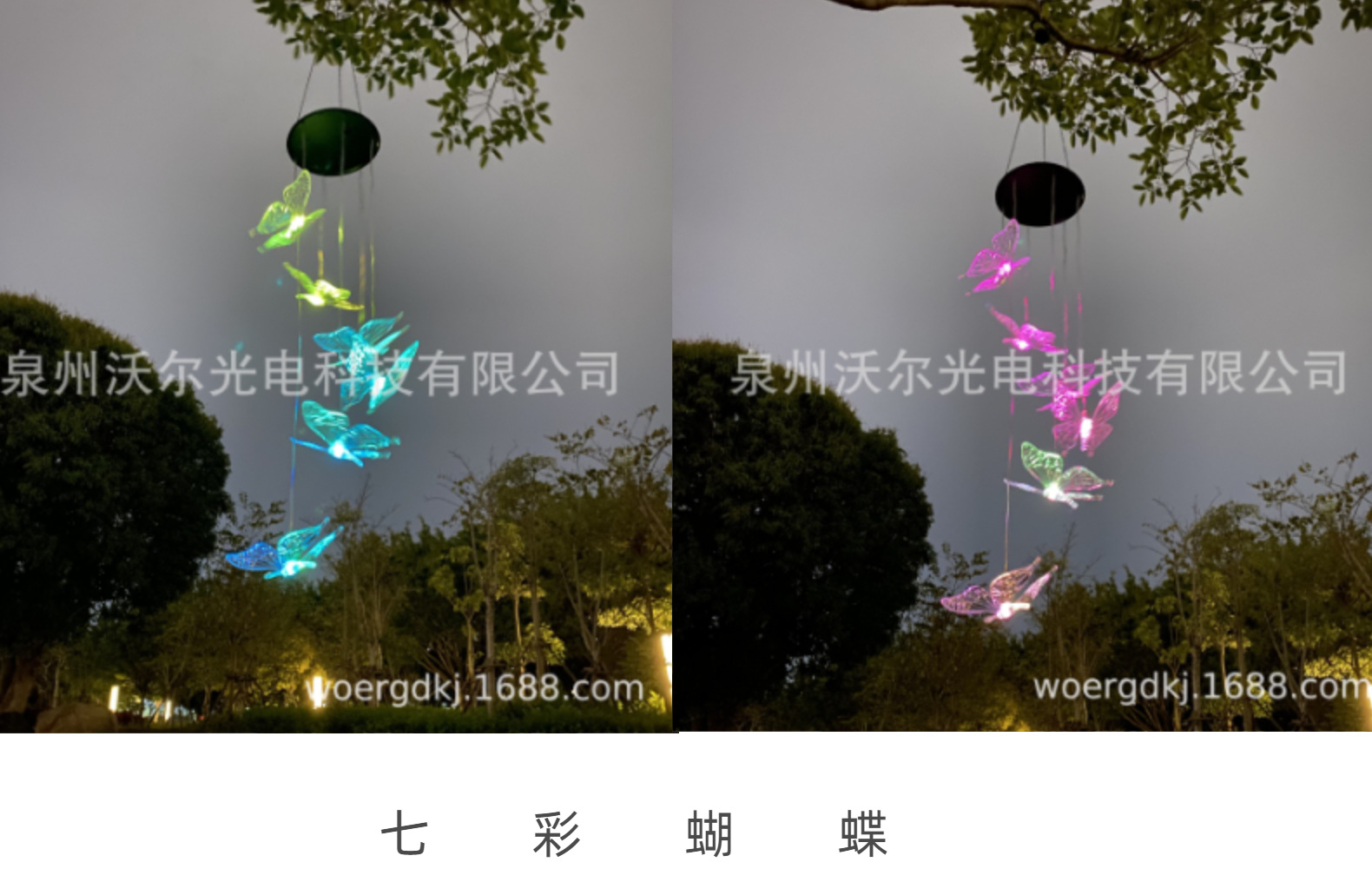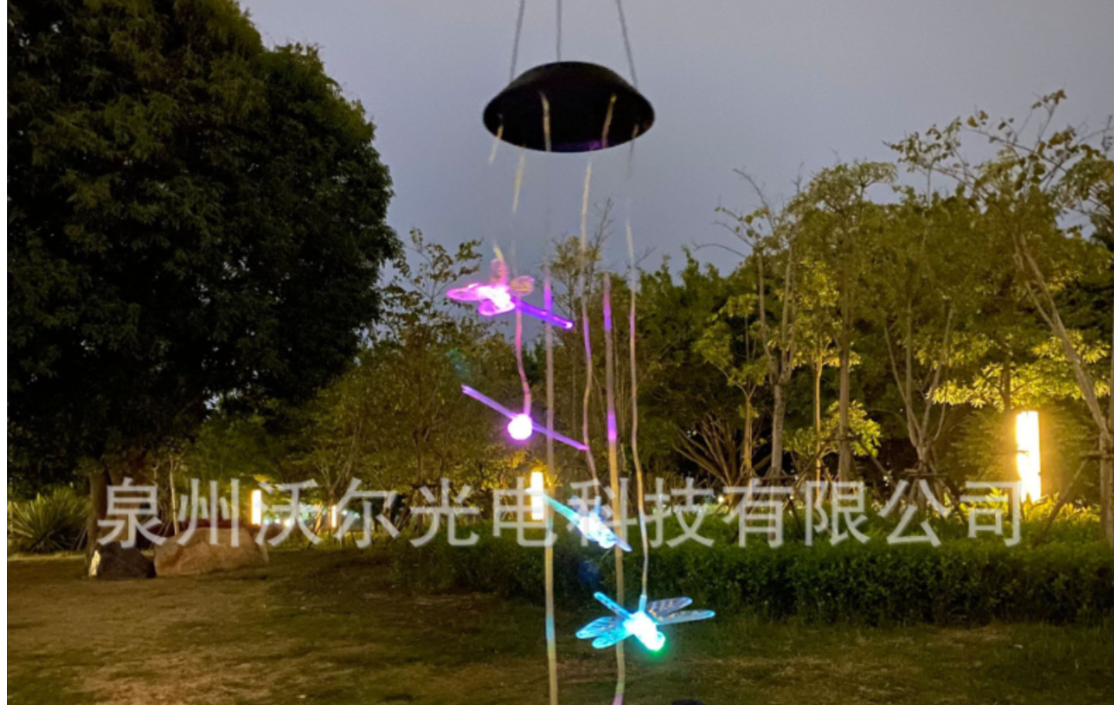 热销 太阳能粒子球灯串风铃 七彩变色蝴蝶蜻蜓仙鹤户外庭院装饰灯