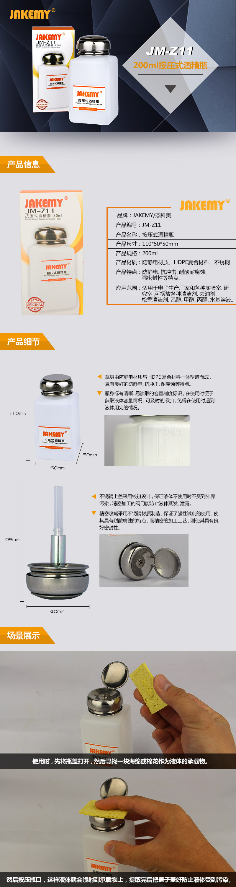 按压式玻璃酒精瓶 200ml防腐蚀天那水瓶手机维修适用 批发挤压瓶