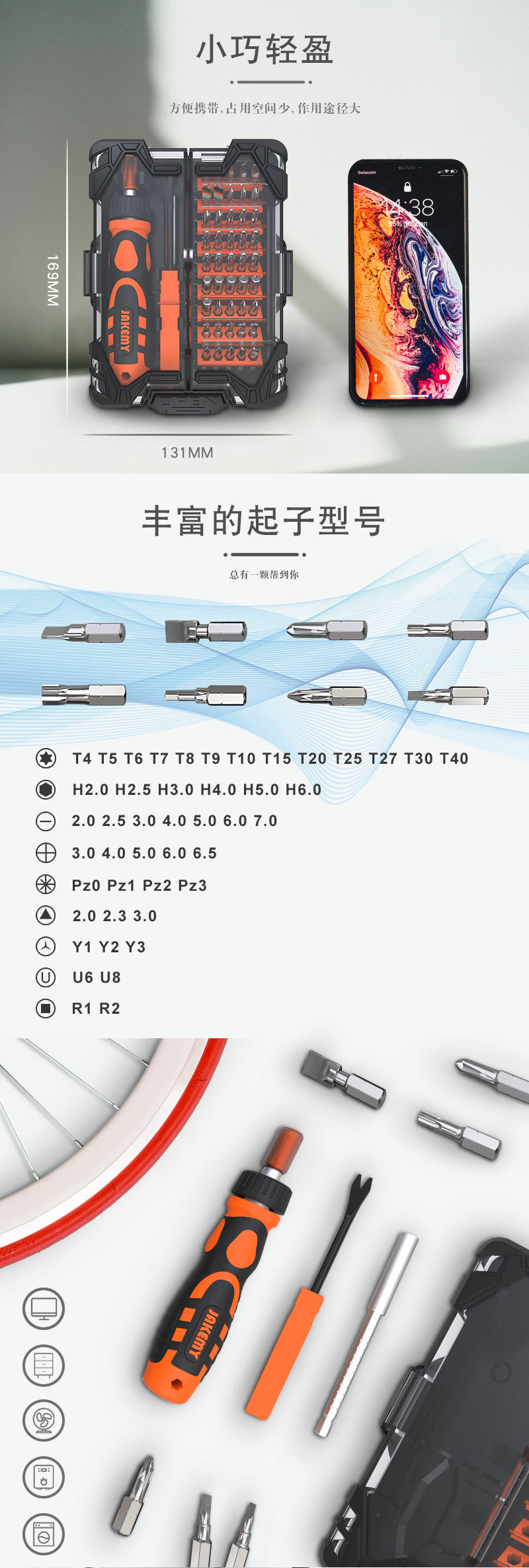 49件多用维修组合工具 家用多功能十字棘轮螺丝刀批头套装JM-6124