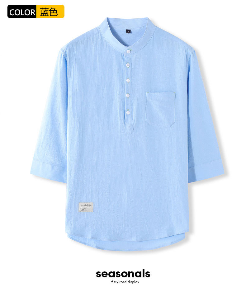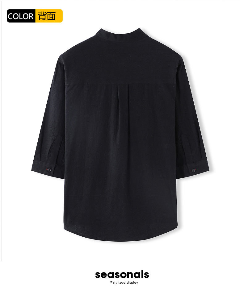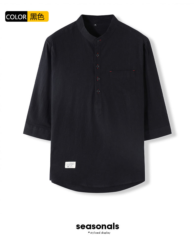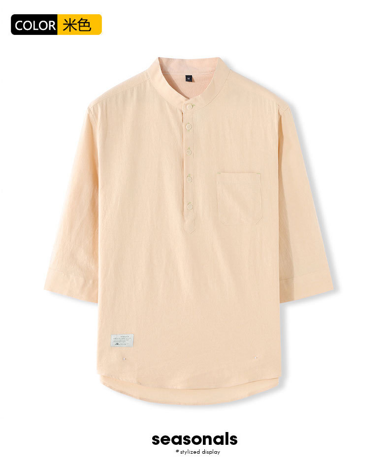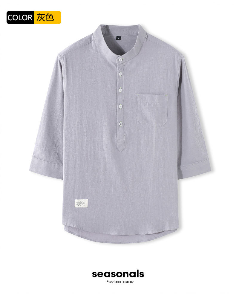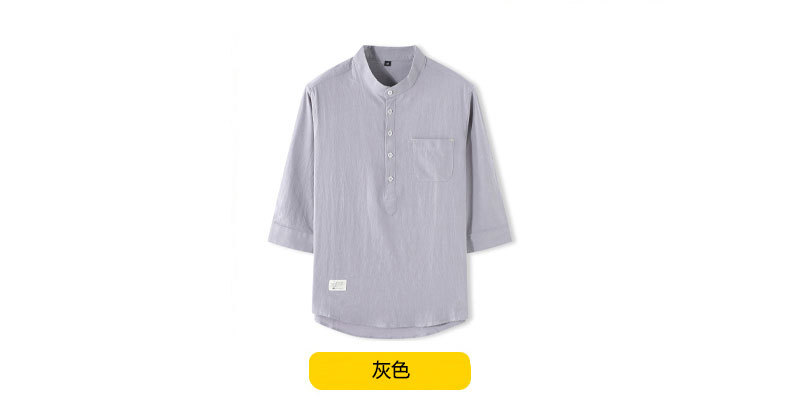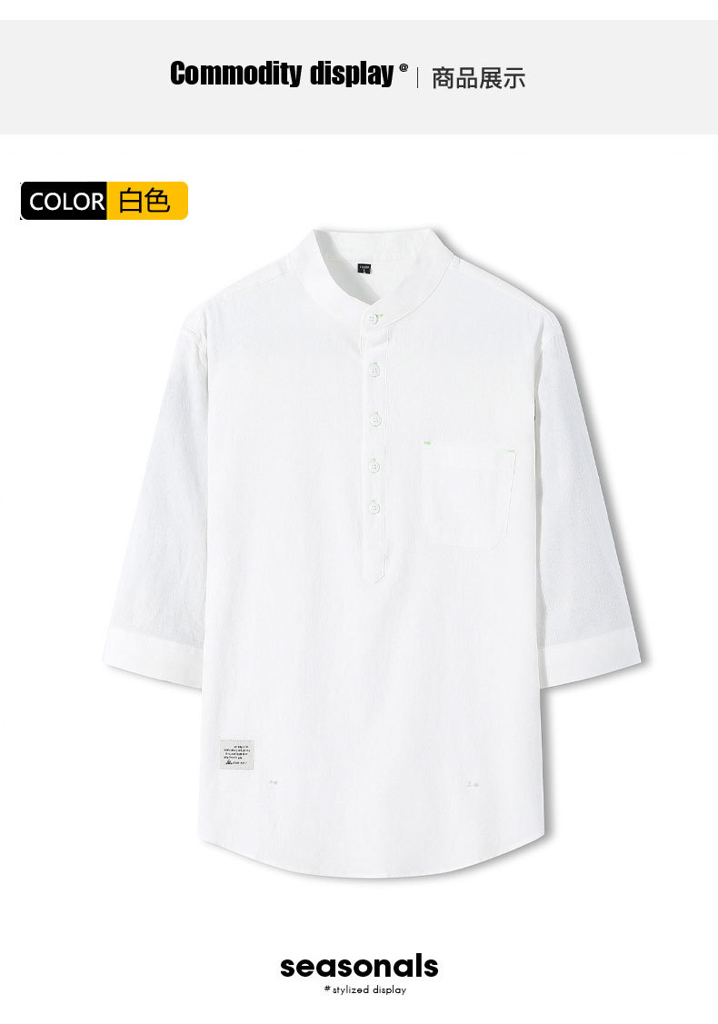 LAZADA跨境 2021夏季七分袖衬衫男装潮牌日系 复古男士短袖衬衣