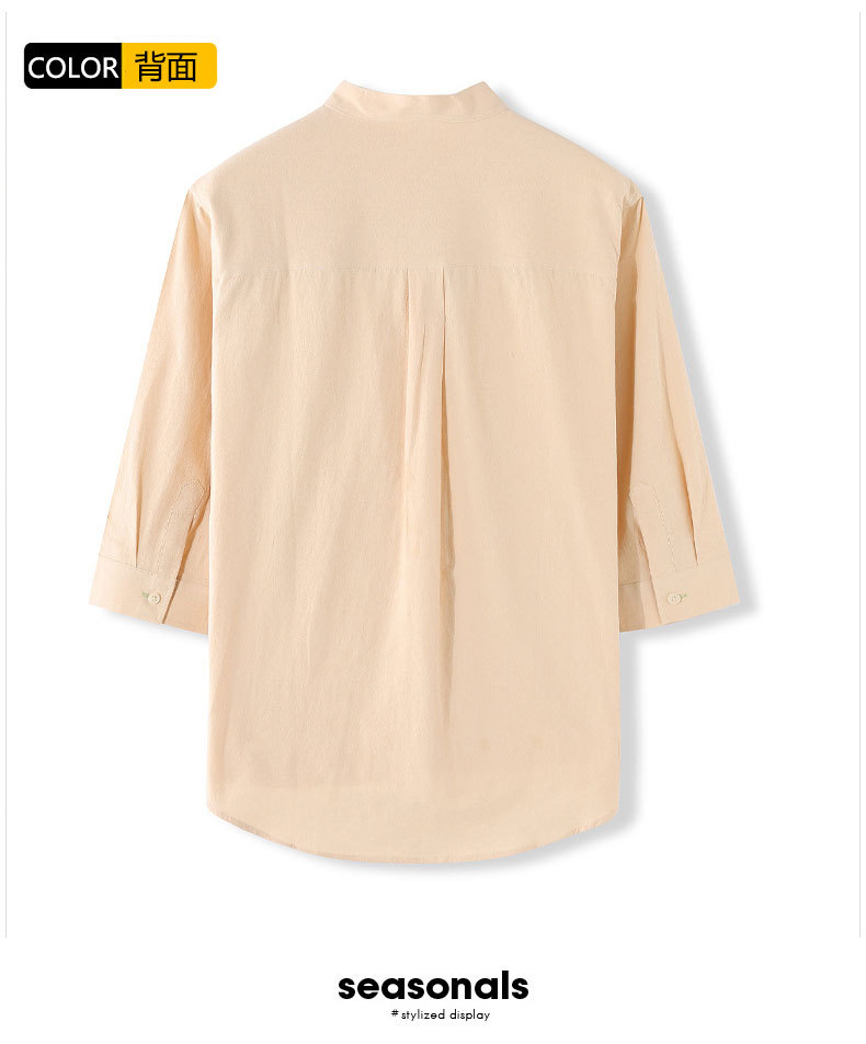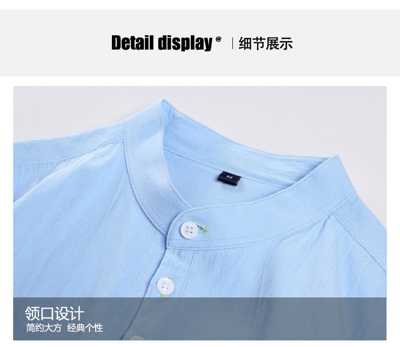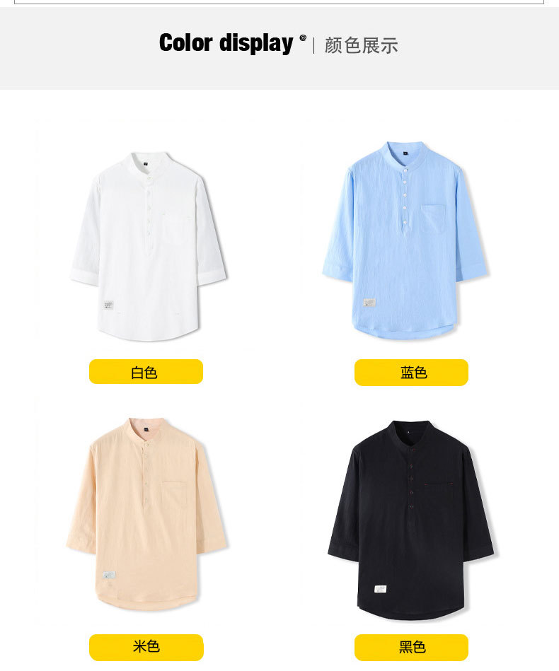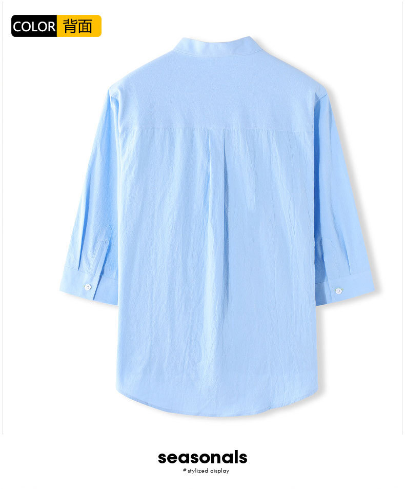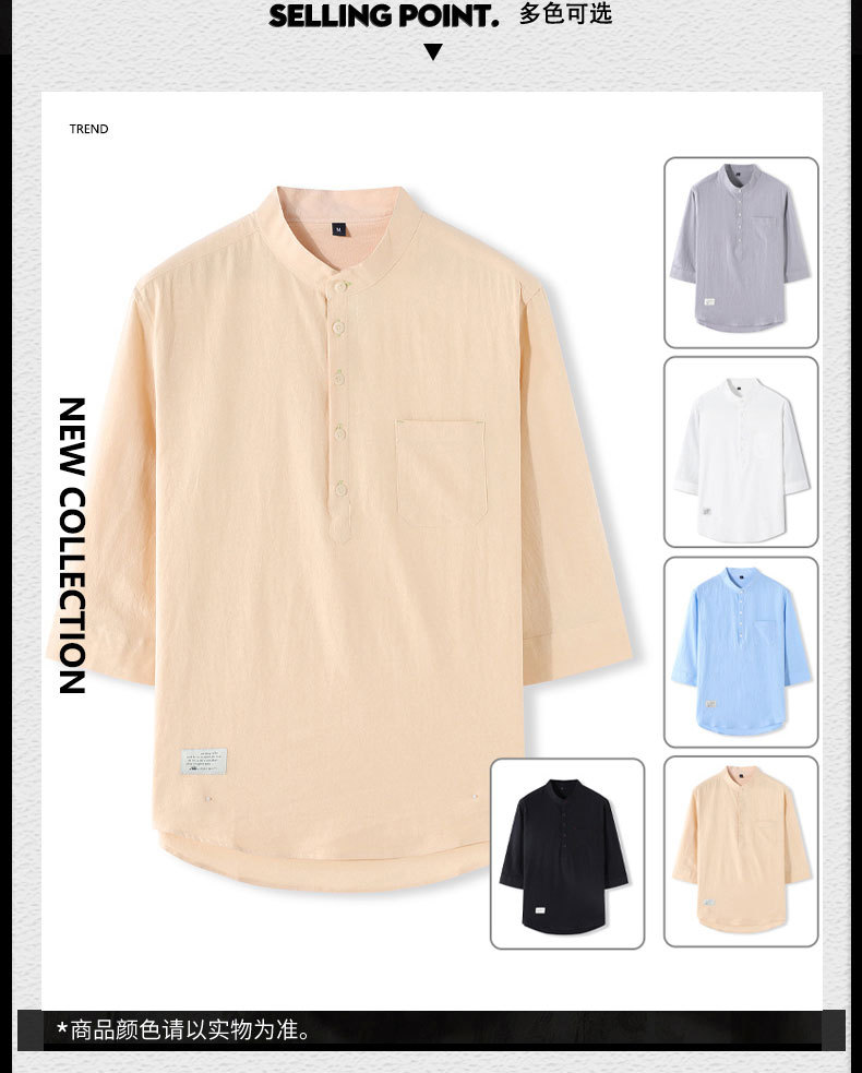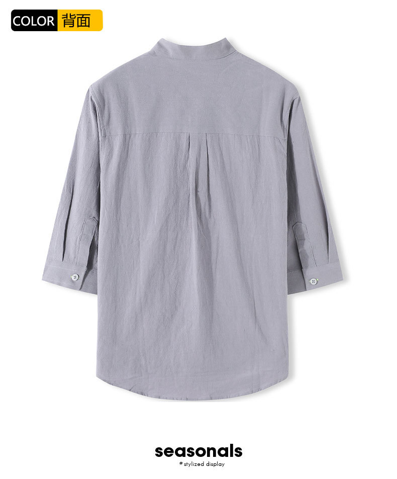 LAZADA跨境 2021夏季七分袖衬衫男装潮牌日系 复古男士短袖衬衣