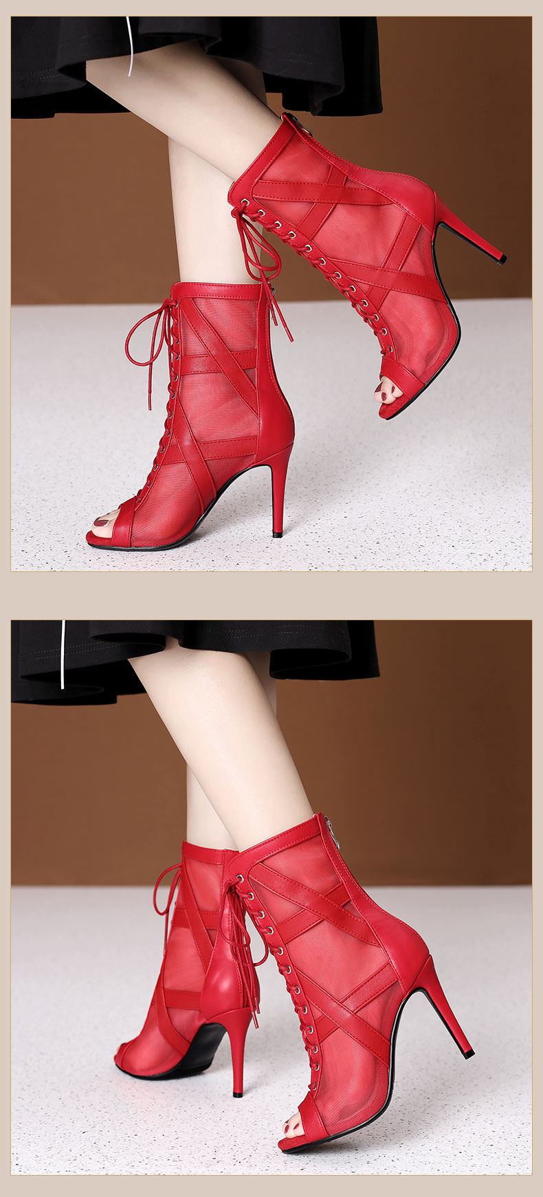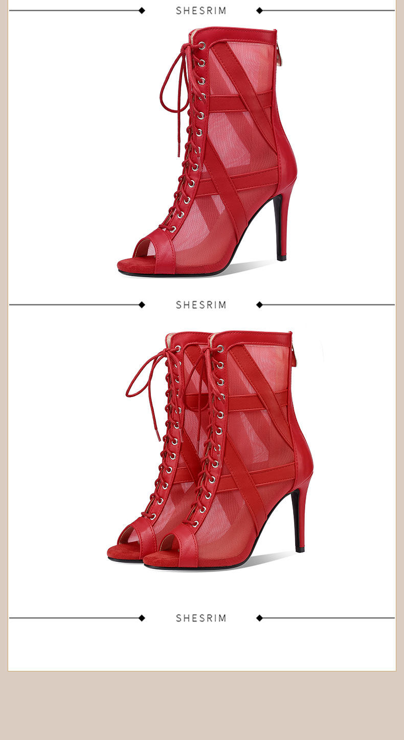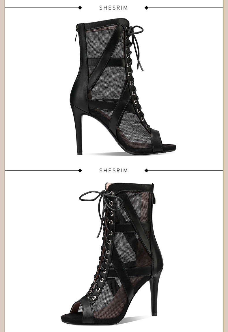 大码女鞋拉丁鞋短靴大码系带爵士舞跳舞高跟凉鞋细跟网纱凉靴外贸
