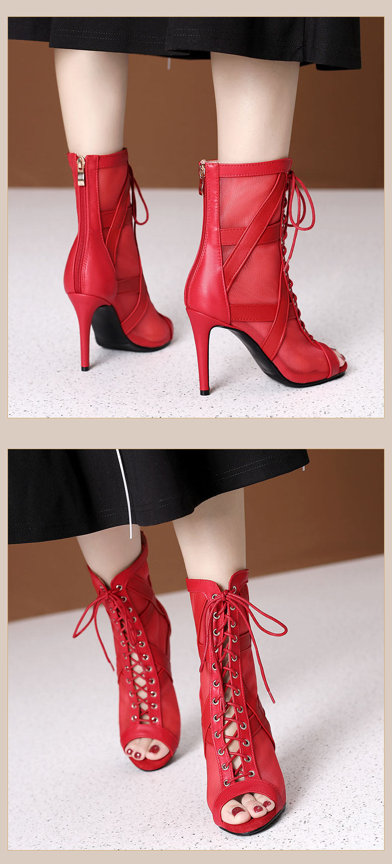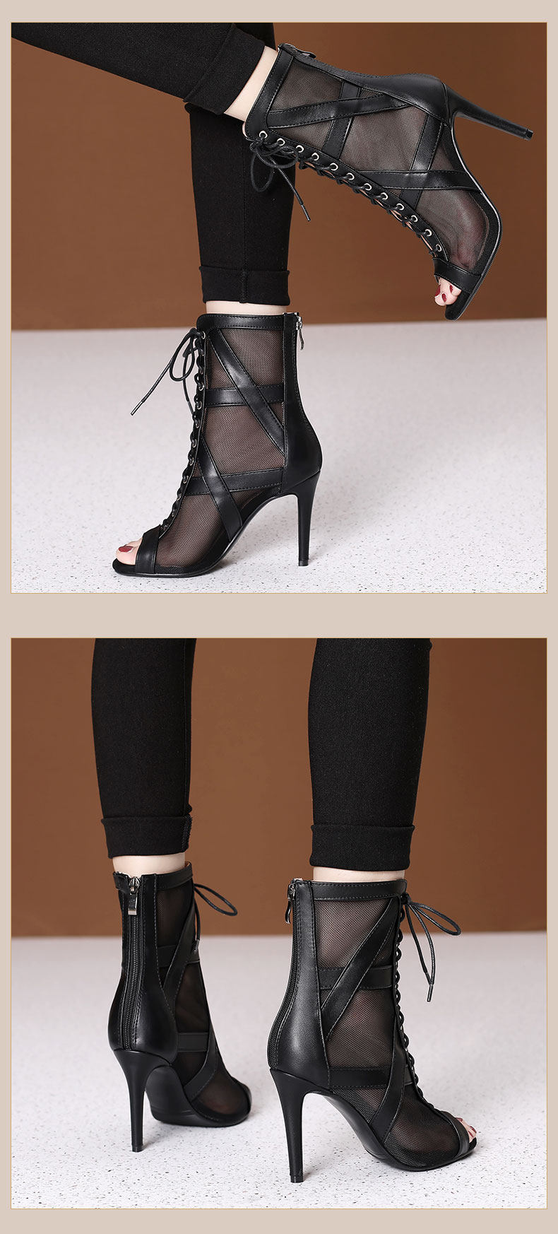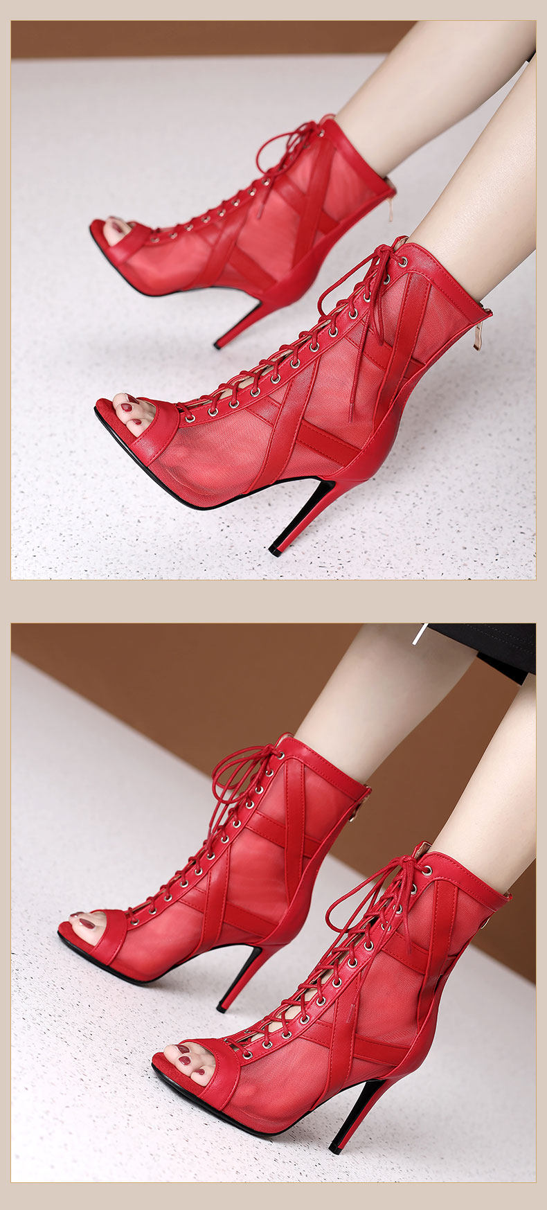 大码女鞋拉丁鞋短靴大码系带爵士舞跳舞高跟凉鞋细跟网纱凉靴外贸