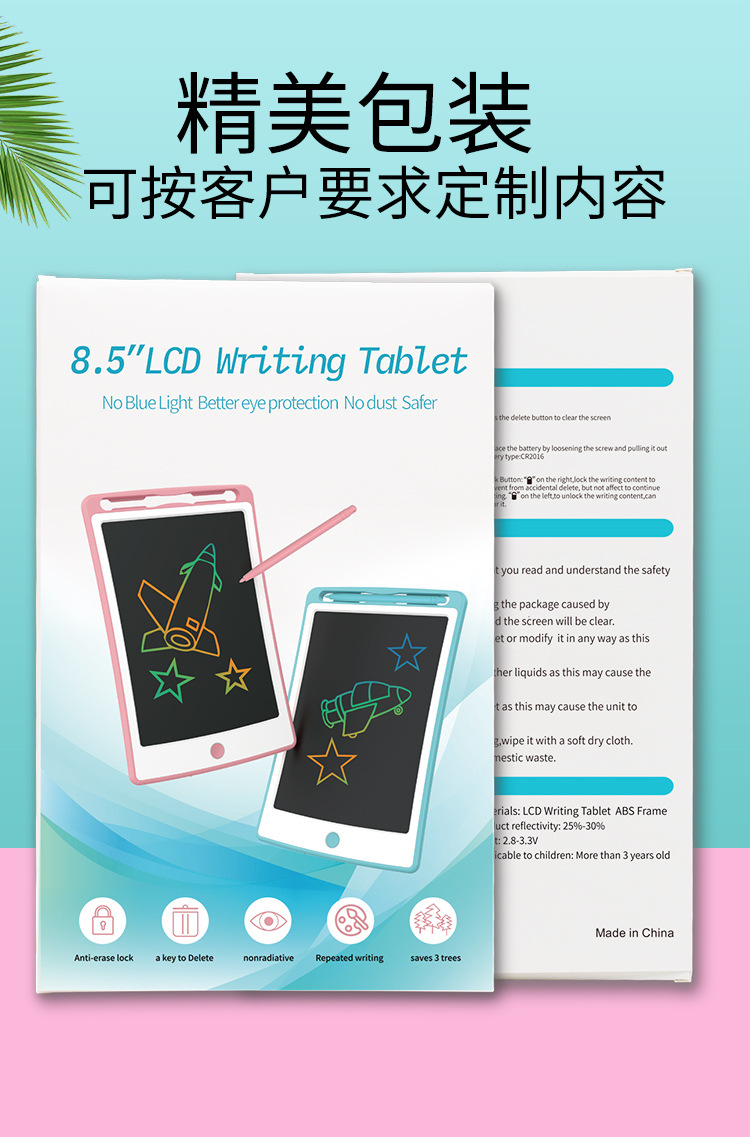 定制8.5寸液晶写字板彩色儿童画板涂鸦画画板留言记事板电子画板