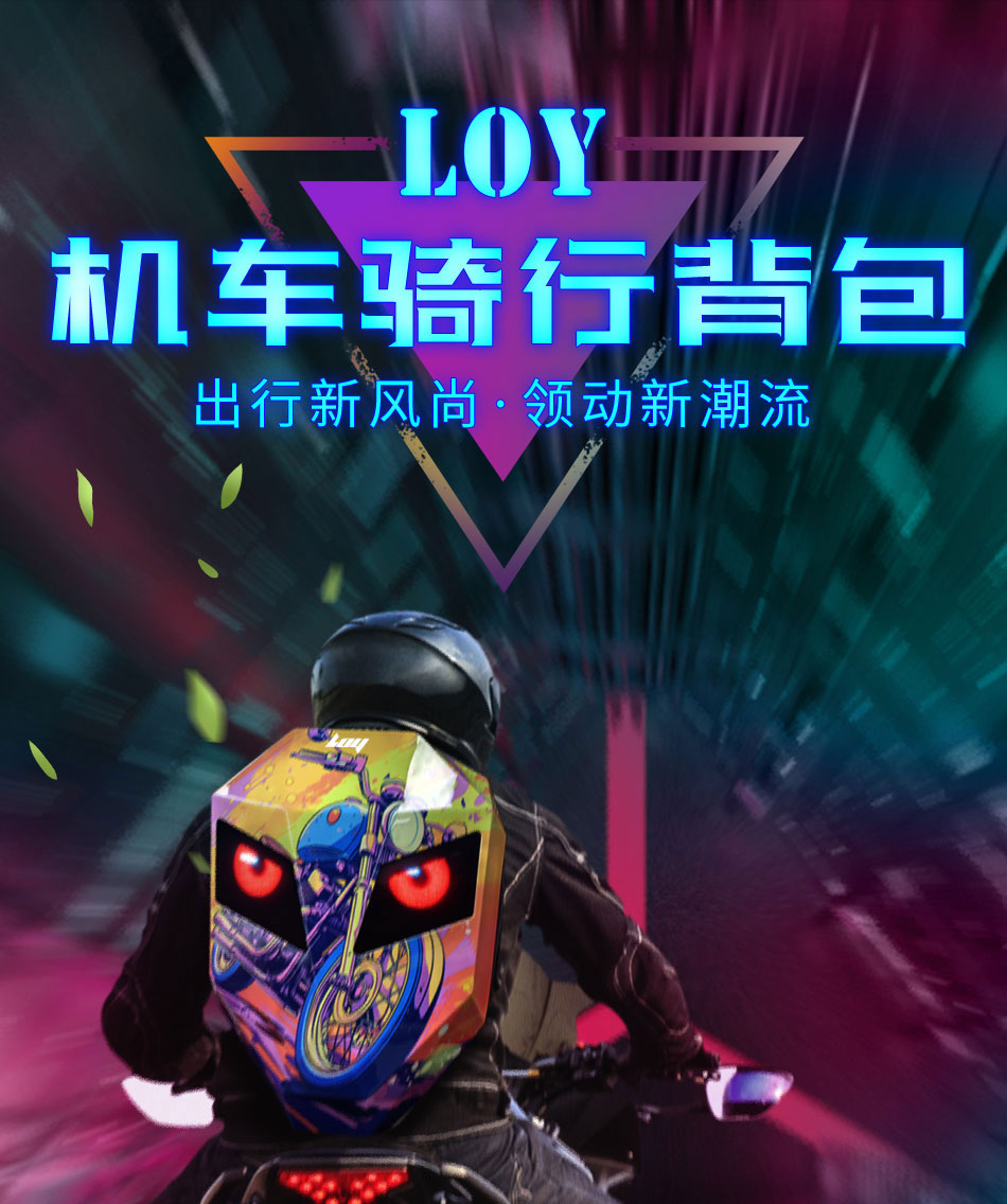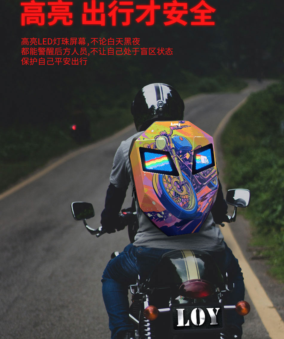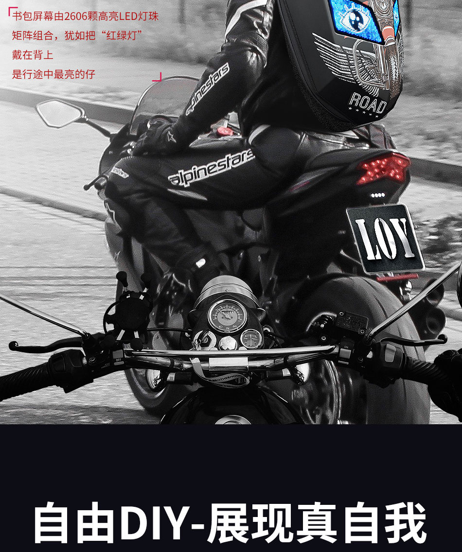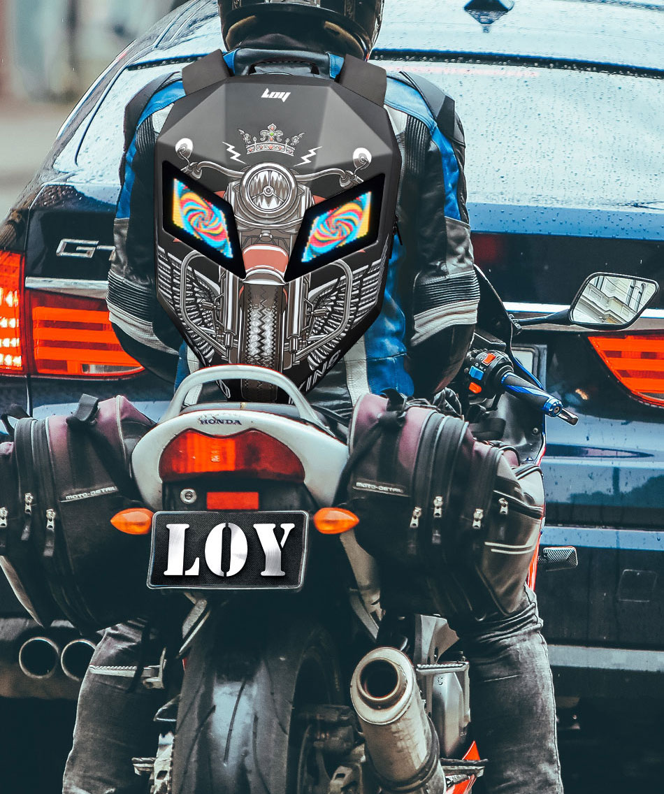 LOY钢铁侠机车骑士背包发光LED骑行DIY图案外壳头盔摩托车防水包