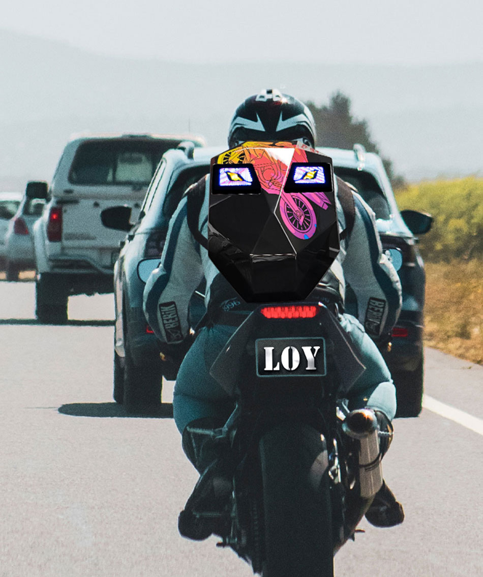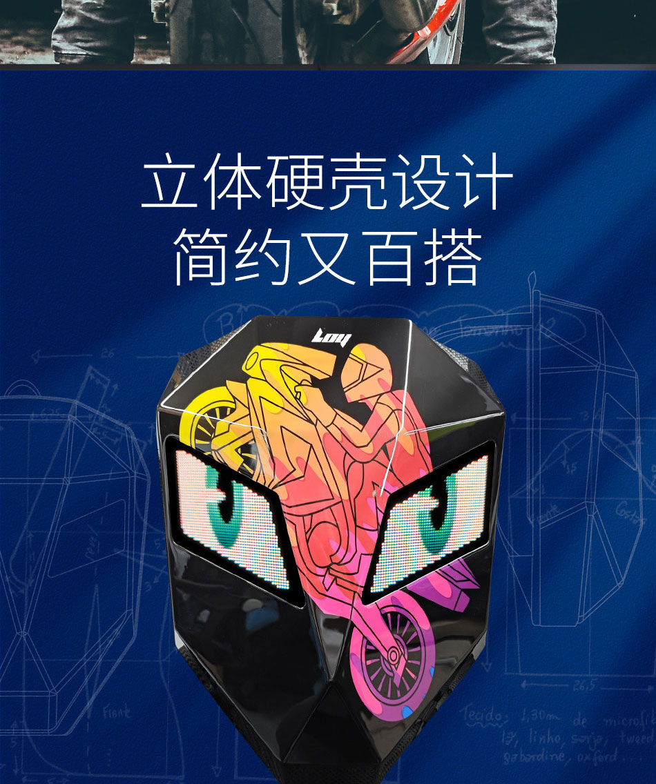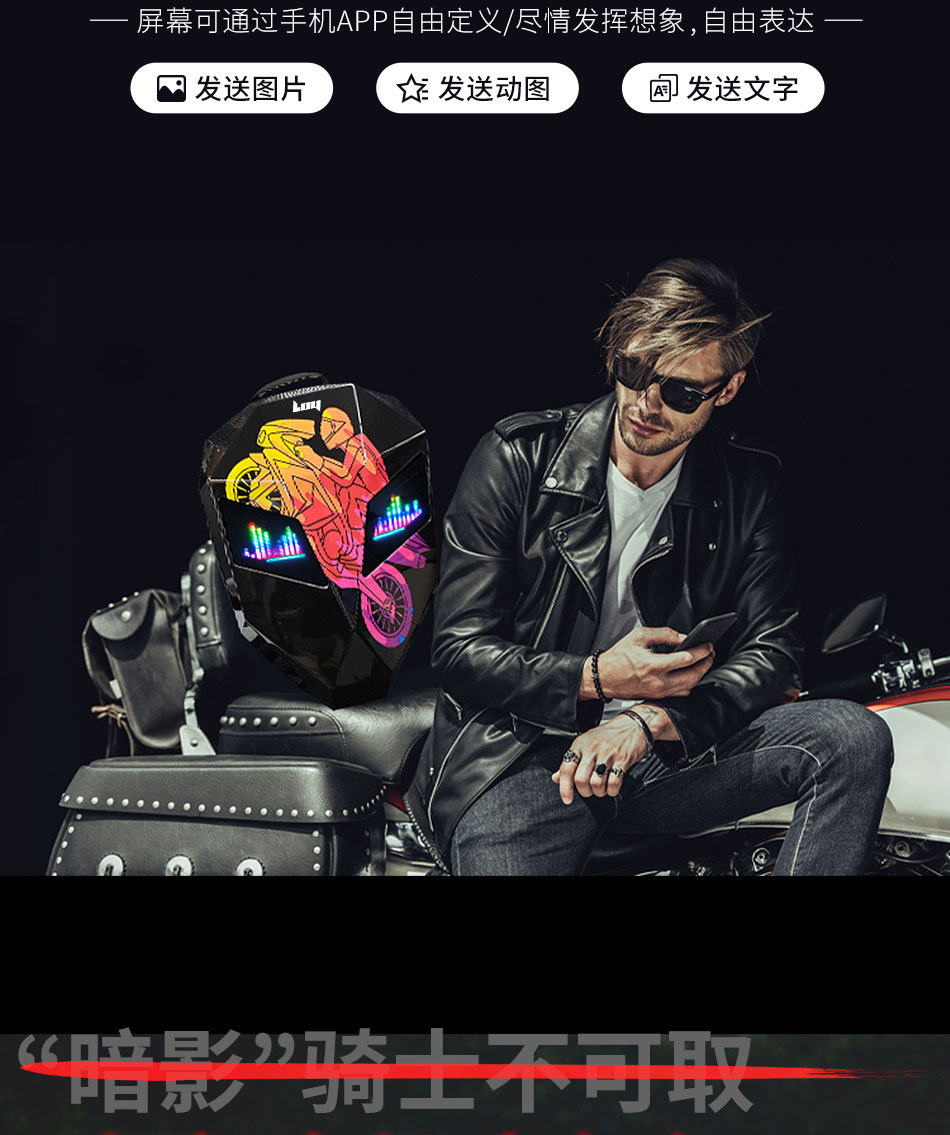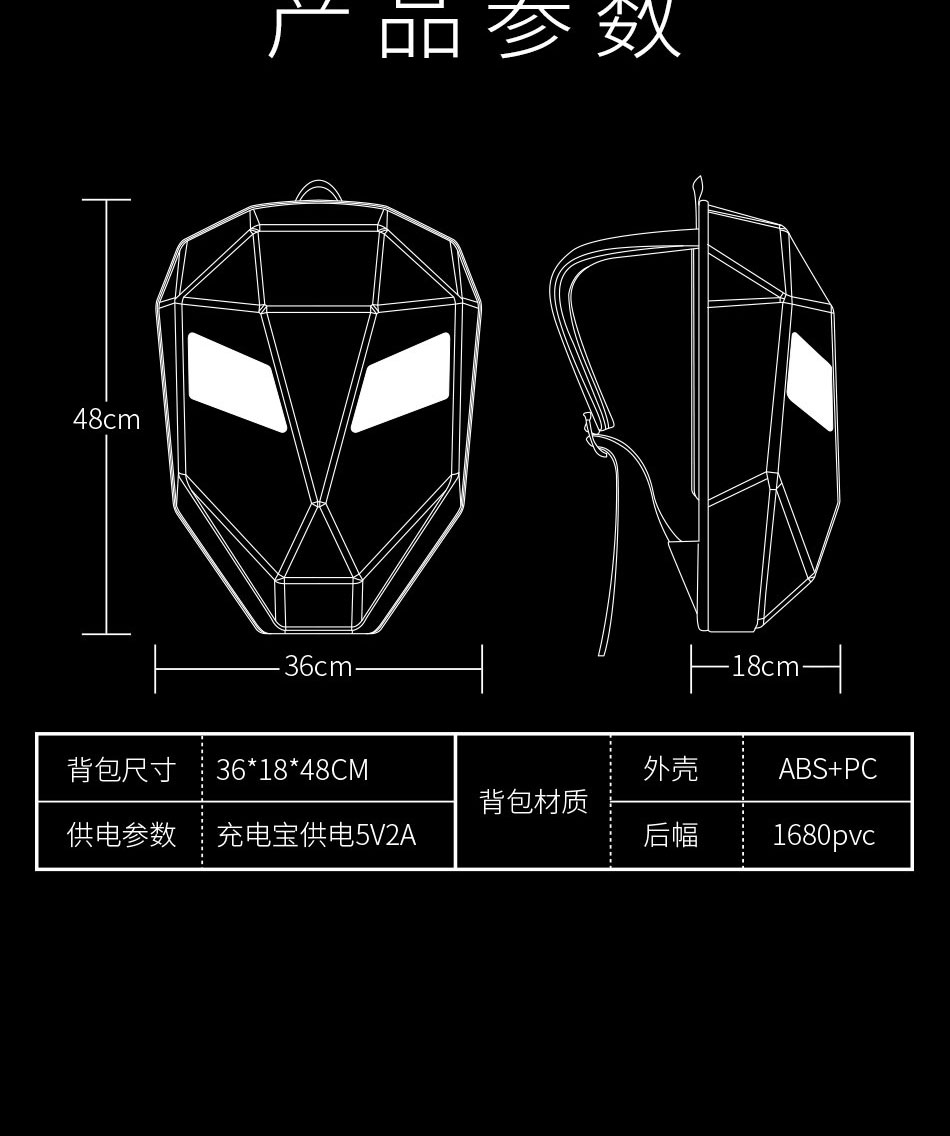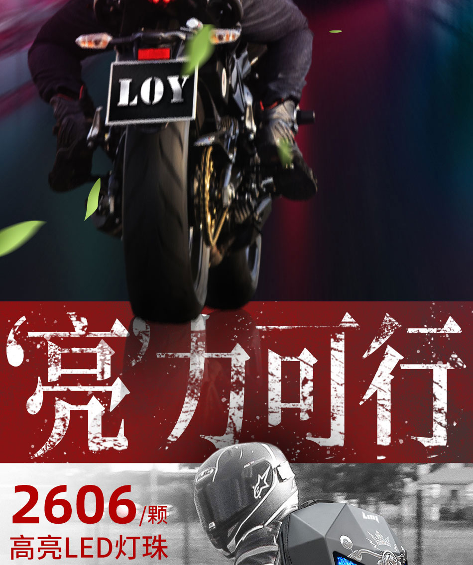 LOY钢铁侠机车骑士背包发光LED骑行DIY图案外壳头盔摩托车防水包