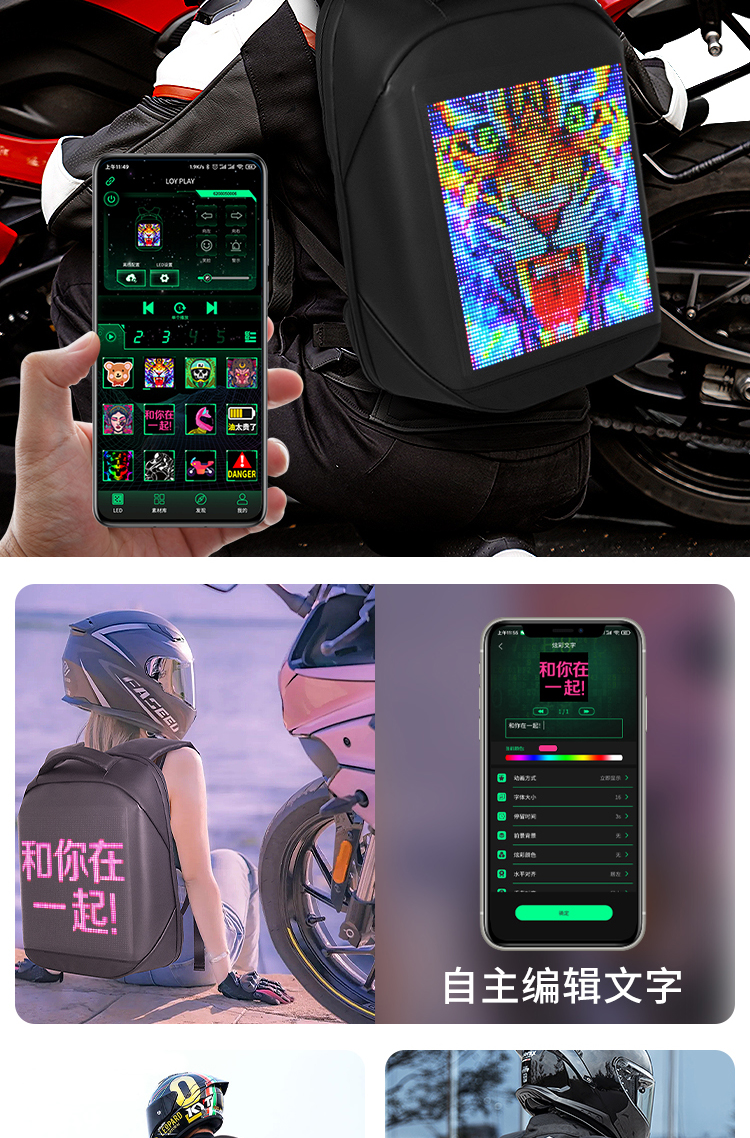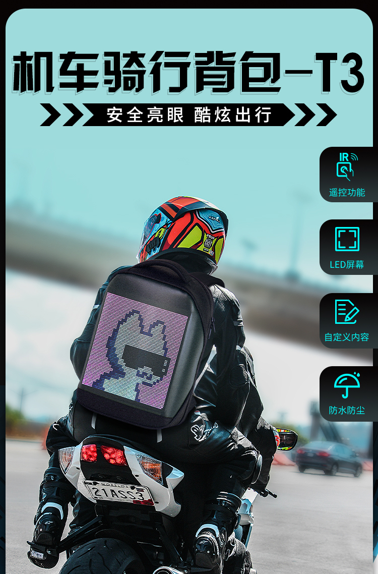 LOY T3高清LED背包P2屏DIY动画LED显示屏移动广告防水双肩包