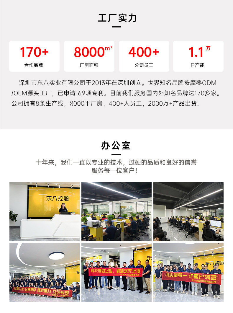 在竞争激烈的按摩器市场,创新是发展的动力。东八实业拥有一支由40余名资深工程师、设计师及技术专家组成的专业研发团队。我们持续投入研发,专注于核心技术的攻克与品类推陈出新。