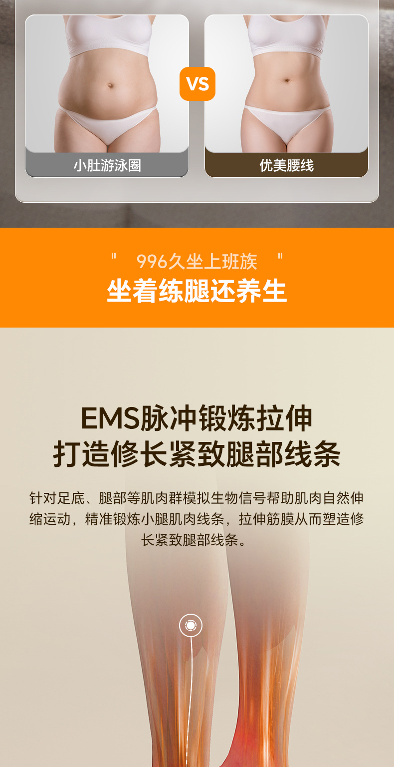 EMS脉冲按摩系列:包括EMS塑形腰带等,利用微电流技术辅助肌肉放松。