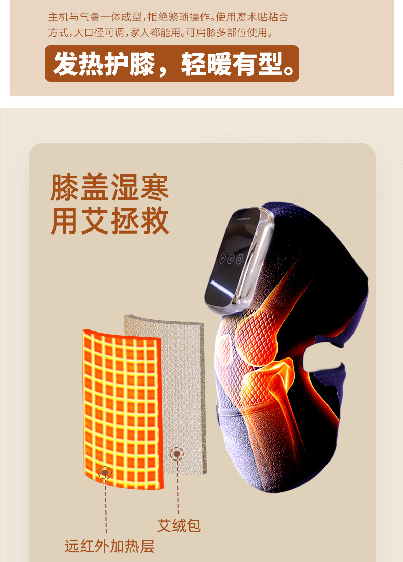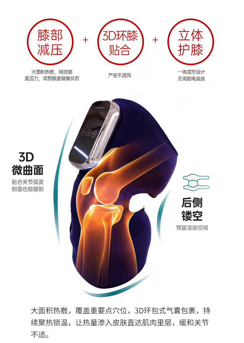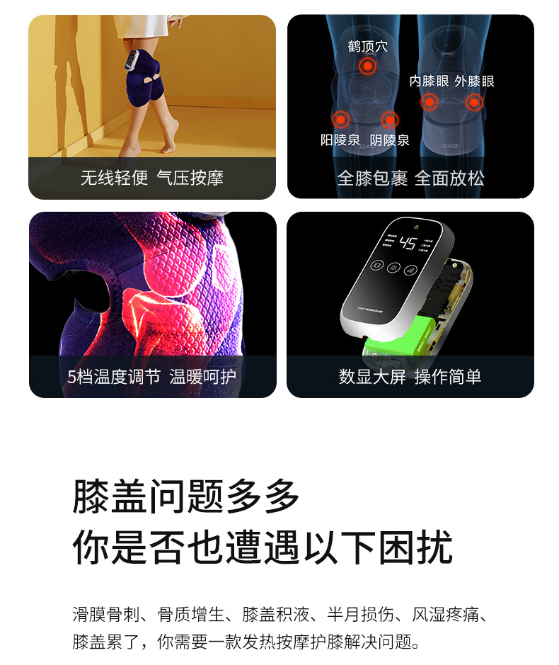 跨境电商、TikTok小店膝盖按摩器膝关节电动发热护膝  模拟真人手法气囊揉捏按摩无线便携 亚马逊、独立站