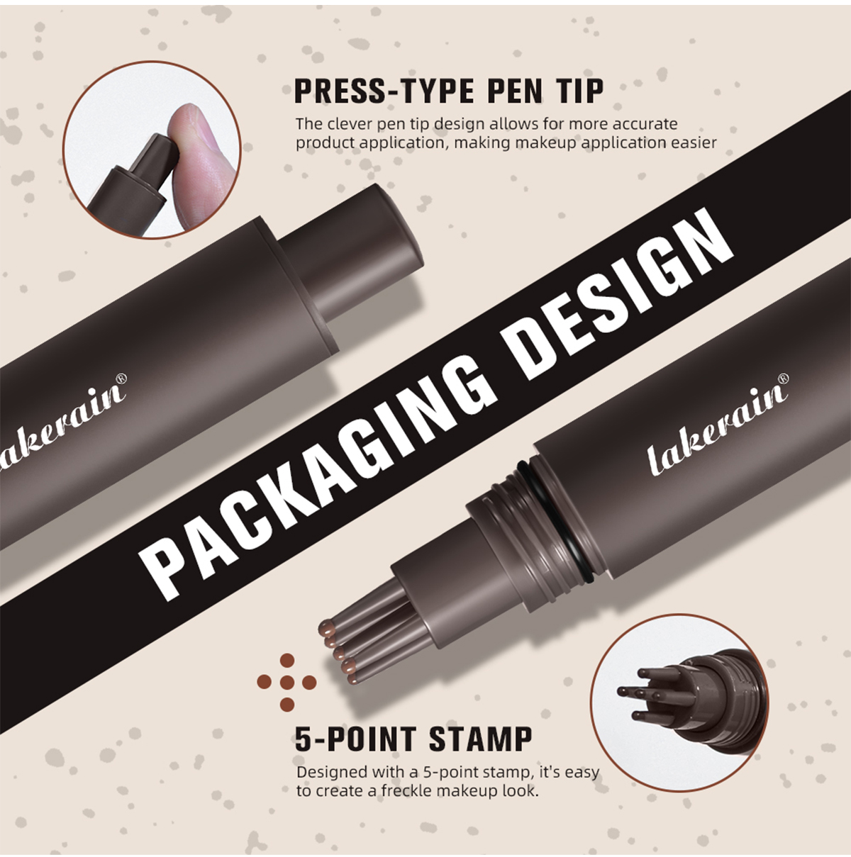 lakerain源头工厂跨境爆款自然仿真印章雀斑笔不易掉色 5点式按压点痣点斑笔