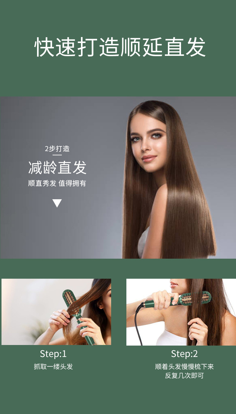跨境直发梳三合一负离子电动美发梳新品直发器直卷两用多功能批发