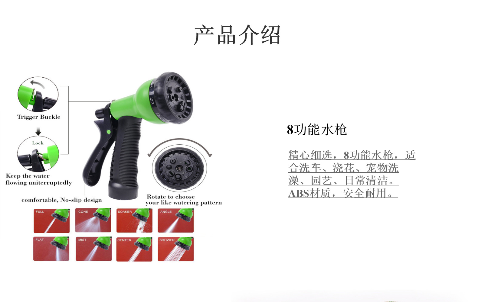 跨境专供花园伸缩水管套装garden hose高压洗车水枪浇花花园软管
