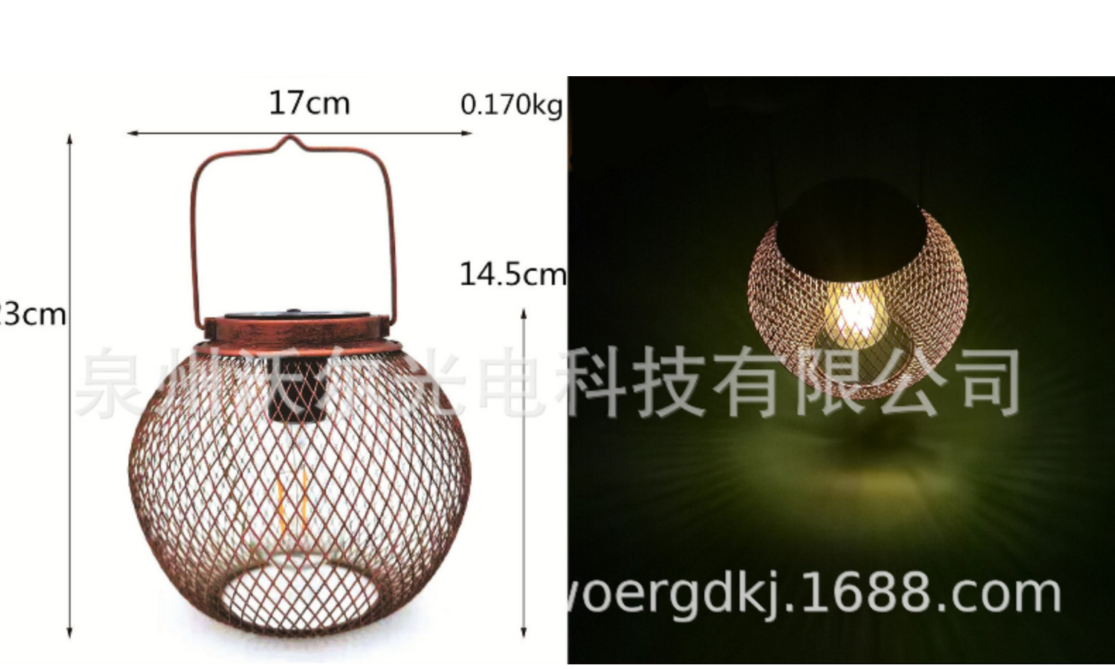 热销 亚马逊LED镂空太阳能铁网灯罩吊灯 挂树灯笼 庭院装饰景观灯