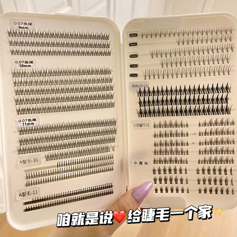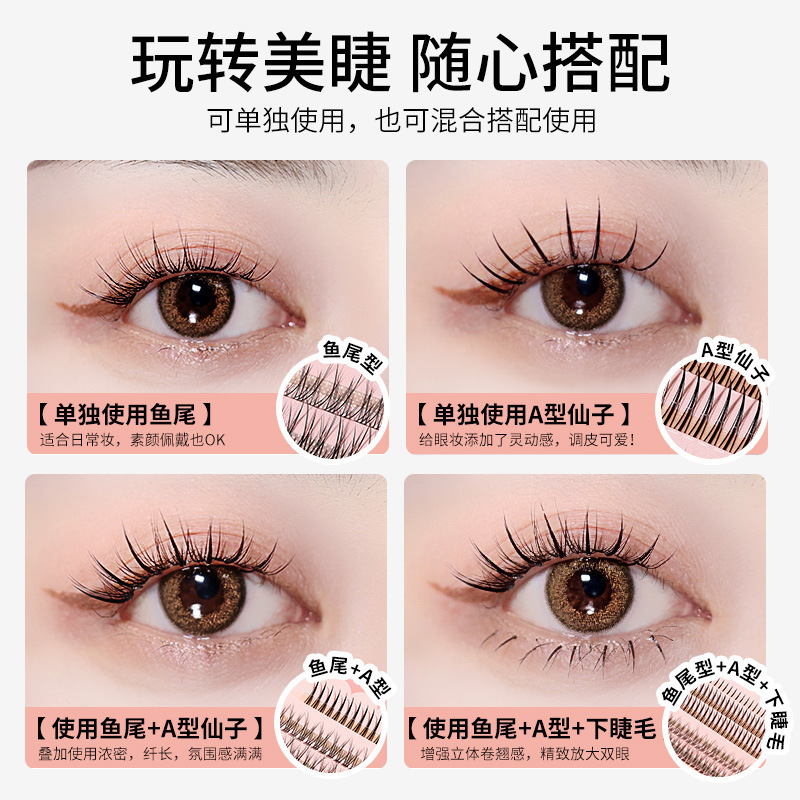 轻盈自然卷翘立体纤细朵毛A型鱼尾混合装新手