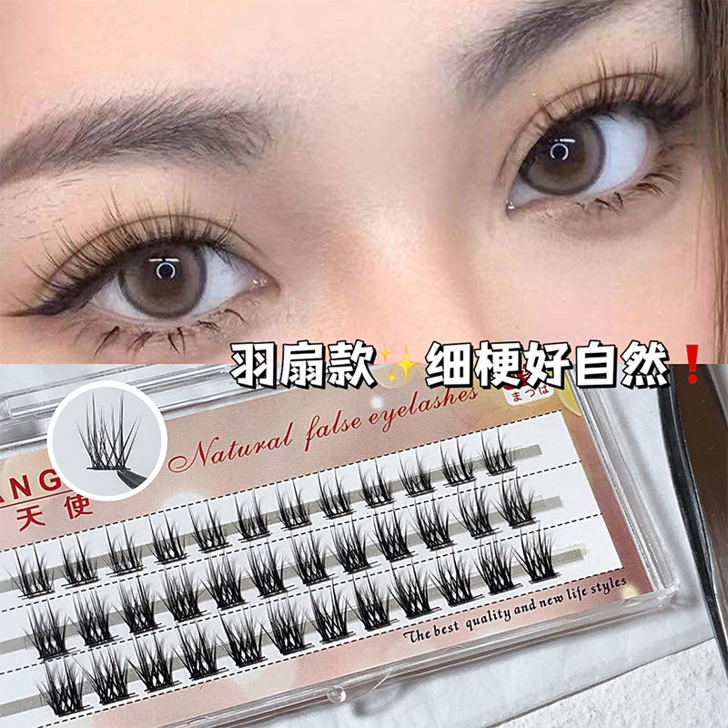 睫天使~大V亚裔纯野风空气感细梗混血泰妆假睫自然透明细梗