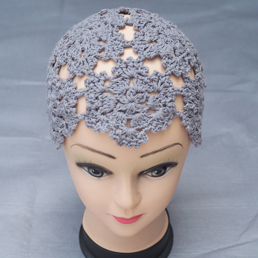 yunweny手工钩编复古纯色拼花针织帽女四季钩针花朵棉线手钩