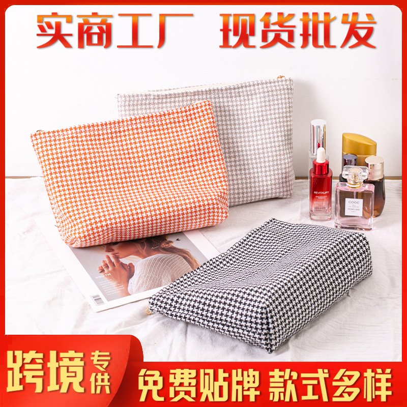 源头工厂千鸟格大容量化妆包小鸟格