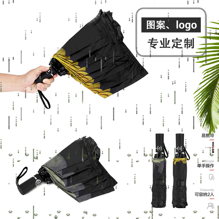 防晒黑胶晴雨伞厂家直销商务折叠伞logo