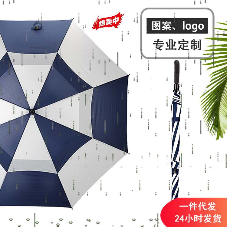 厂家定制25寸双层高尔夫伞直柄伞全纤维商务广告