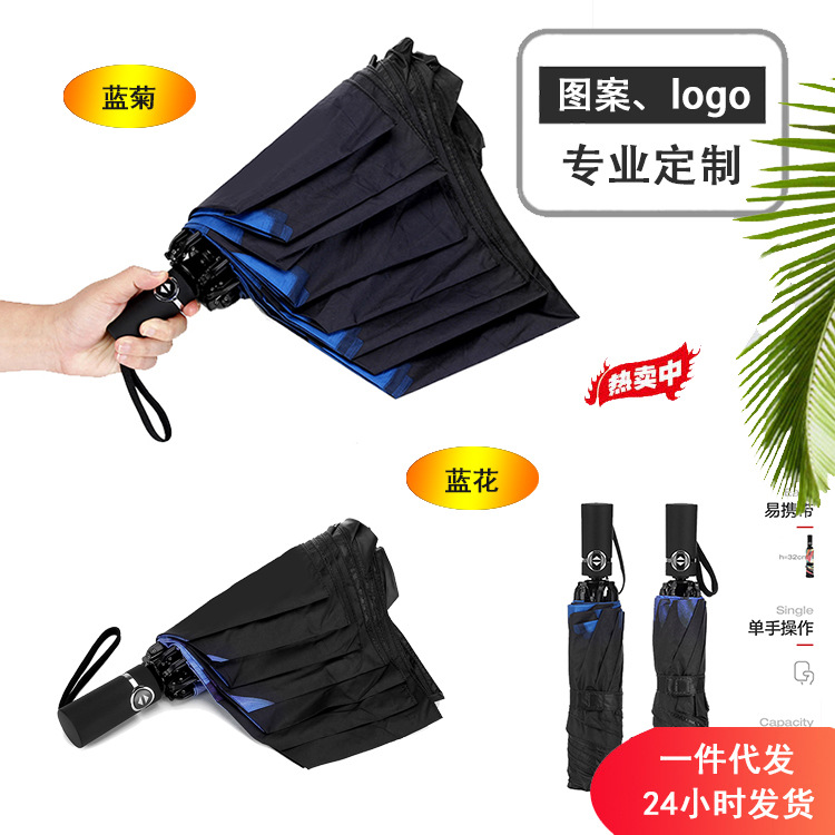深圳外单全自动开收折叠反光边地摊热销晴雨伞自动开收伞一箱包邮