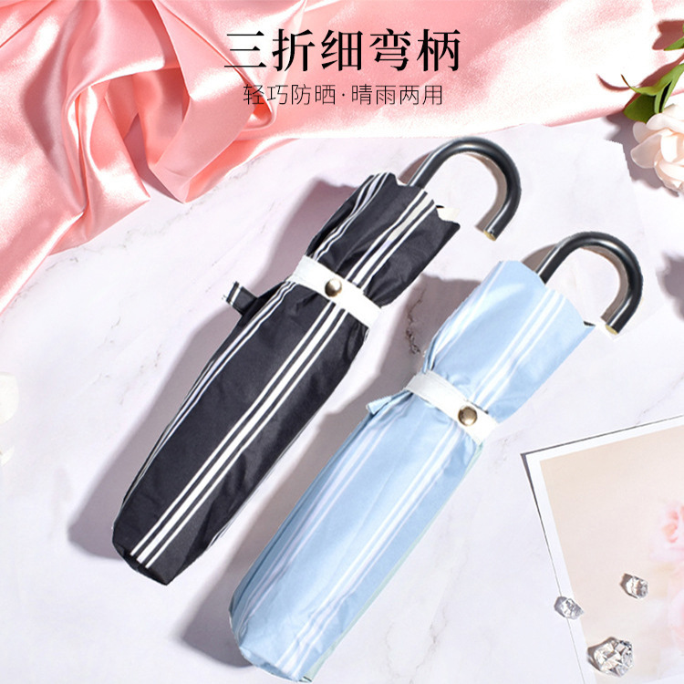 日系弯柄折叠伞格子便携黑胶遮阳防晒